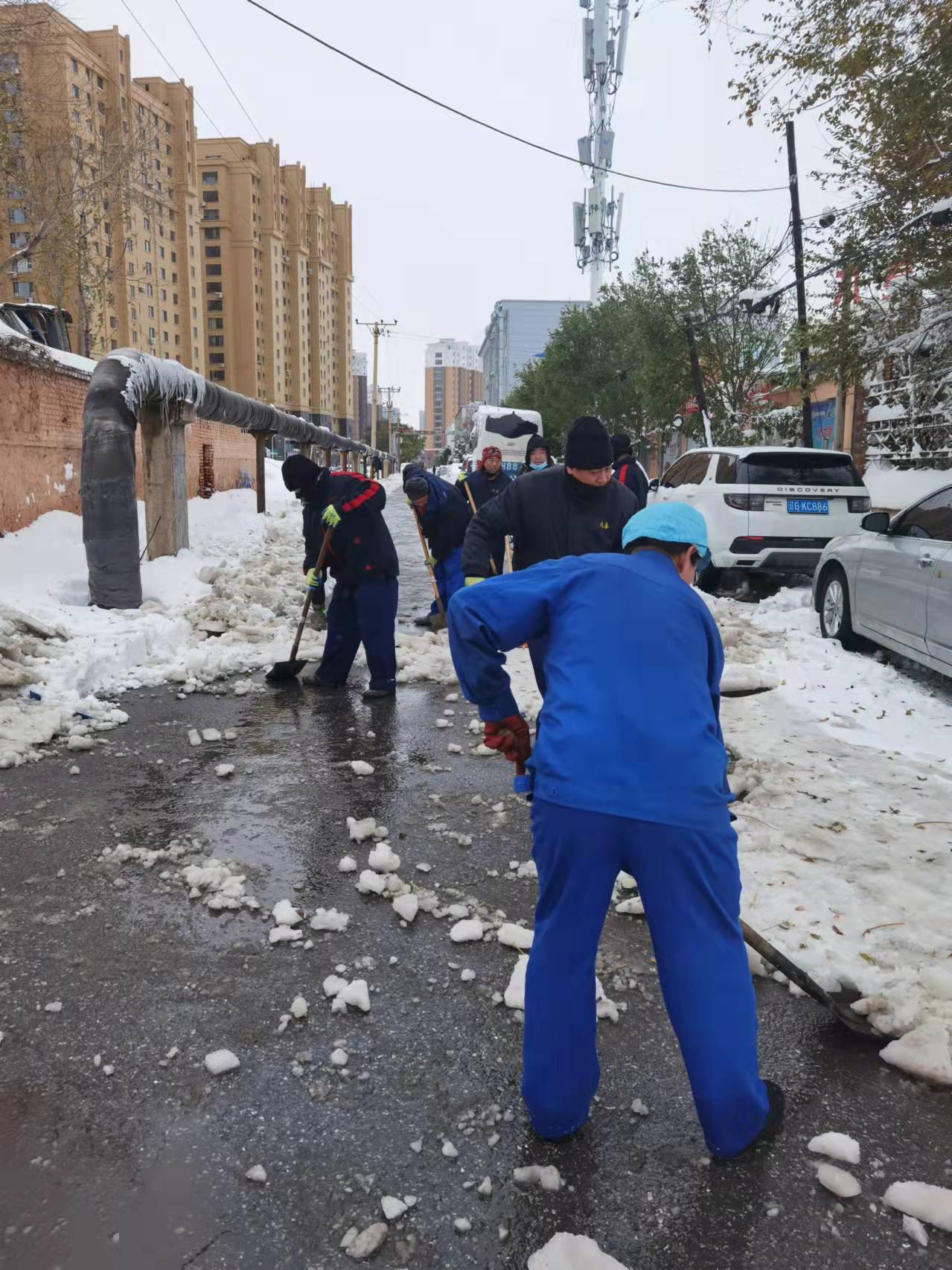 初雪是景,除雪是情。落雪無聲,洗盡鉛華。最美的不是下雪天,而是大家一起努力奮斗的身影。九泰人的辛勤汗水在寒冬揮灑,別樣的青春在雪中閃光。大家的歡聲笑語在白茫茫的雪地里漸漸消散,掃雪任務(wù)圓滿完成!